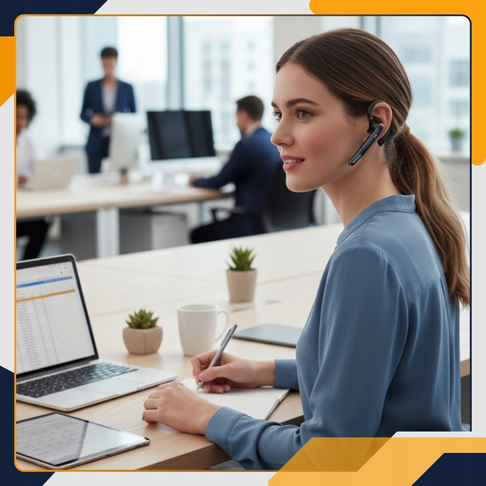 ✅ Smukły kształt i dobrze wyprofilowana obudowa sprawiają, że słuchawka wygląda profesjonalnie i nie przeszkadza podczas pracy.